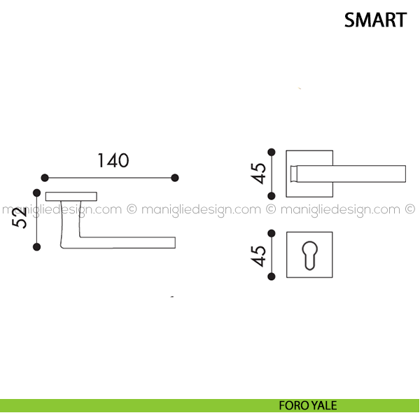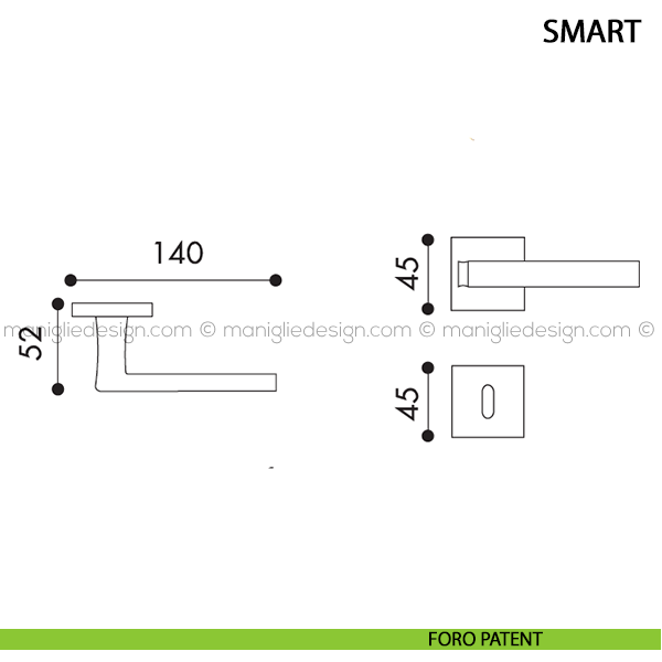 Maniglia per porta Smart Arieni su rosetta quadrata. Design by Arieni Maniglie.