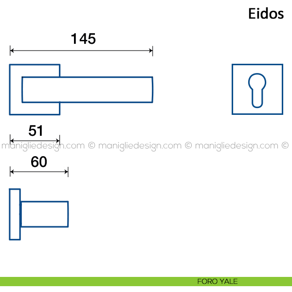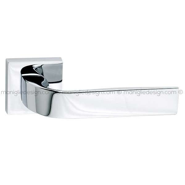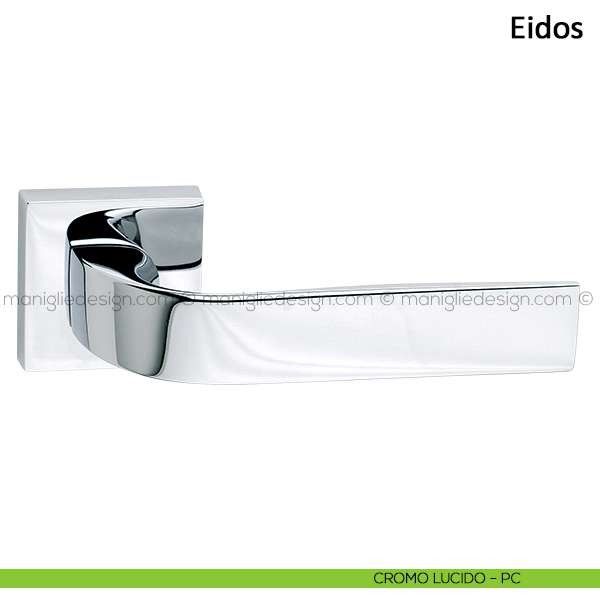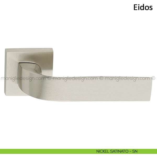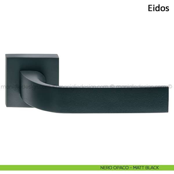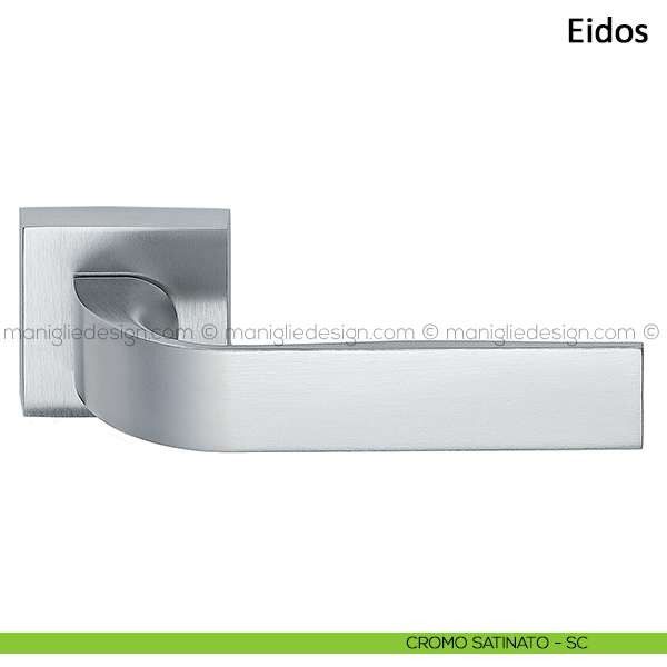 Maniglia per porta interna Eidos Frascio con rosetta e bocchetta quadrata. Design by Brian Sironi.