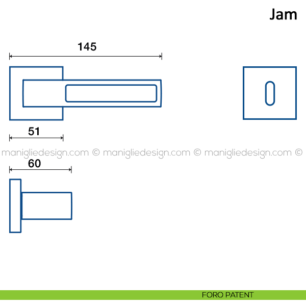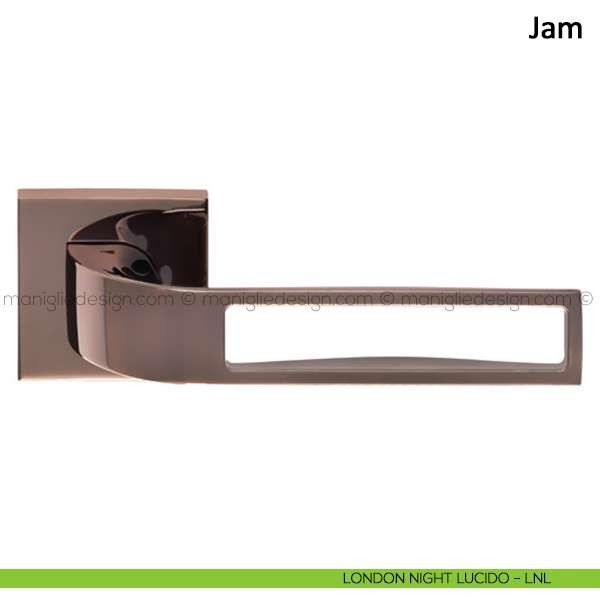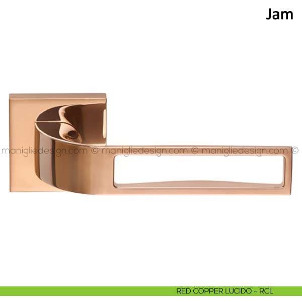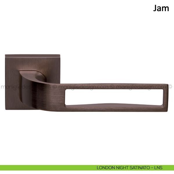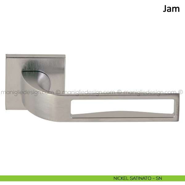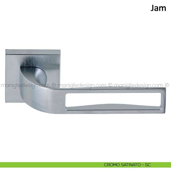 Maniglia per porta interna Jam Frascio con rosetta e bocchetta quadrata. Design by Frascio Design.