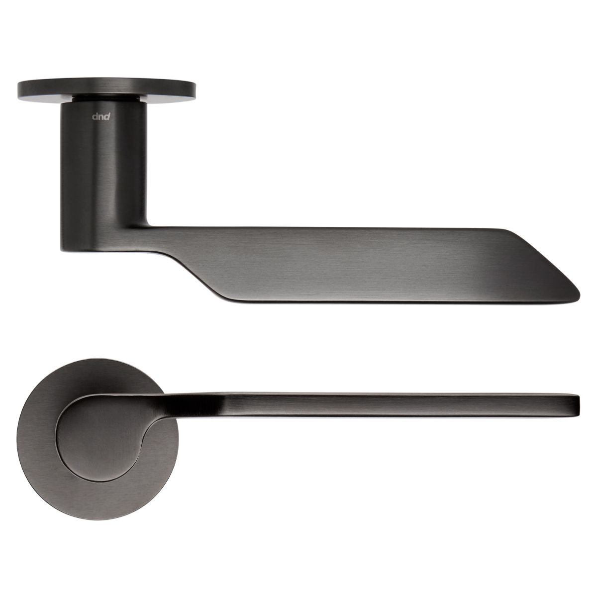 Maniglia per porta interna Levante dnd handles con rosetta e bocchetta tonda fine. Design by Maurizio Varratta.