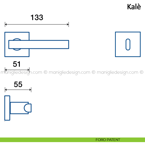Maniglia per porta interna Kalè Frascio con rosetta e bocchetta quadrata. Design by Frascio Design.