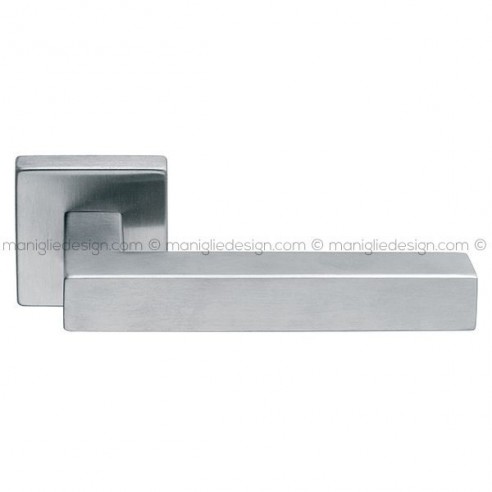 Maniglia per porta interna Alfa Frascio in acciaio inox con rosetta e bocchetta quadrata. Design by Frascio Design.