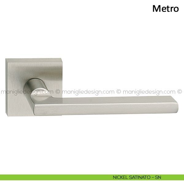 Maniglia per porta interna Metro Frascio con rosetta e bocchetta quadrata. Design by Frascio.