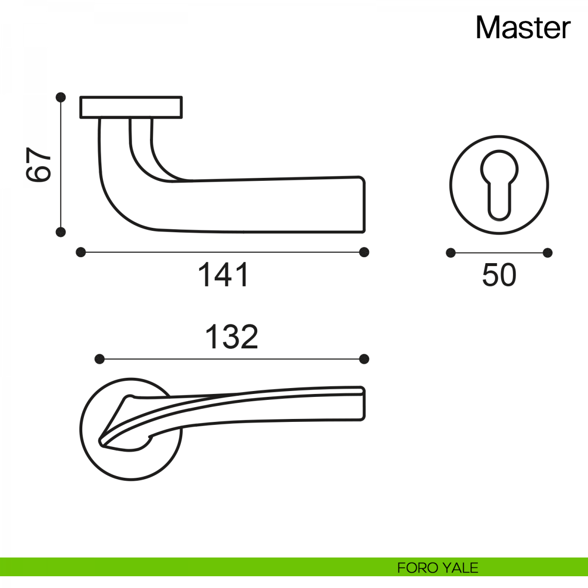 Maniglia per porta Master Manital su rosetta tonda. Design by Maurizio Giordano.
