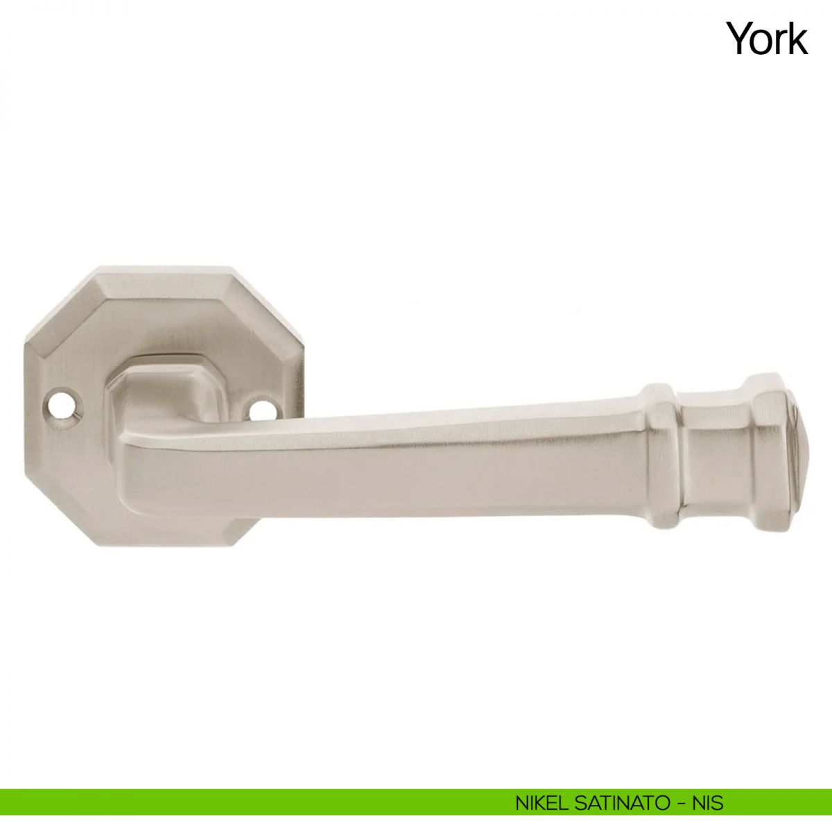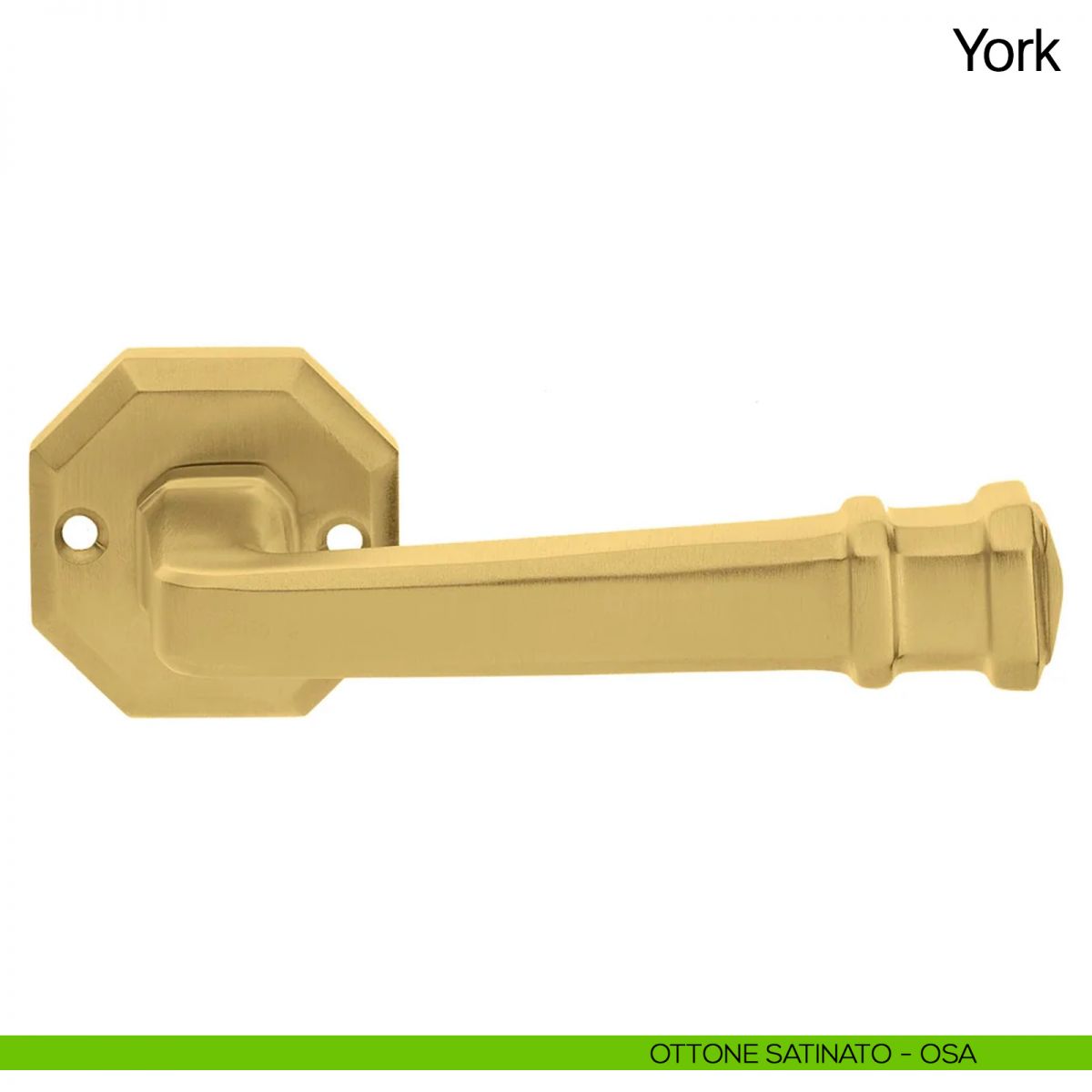 Lo studio di progettazione interno all'azienda Manital realizza una nuova serie di maniglie classiche, che porta il nome di York. La serie York appartiene alla linea di maniglie in ottone. York rievoca il periodo storico del neoclassico, ed è caratterizzata da linee rigorose e razionali tipiche dell'ottagono, riprese anche nella rosetta.