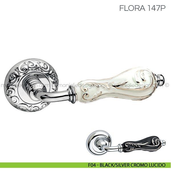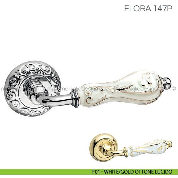 Maniglione con porcellana per porta Flora Fimet Handles con rosetta ad avvitare.