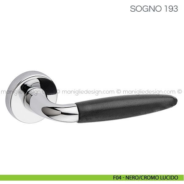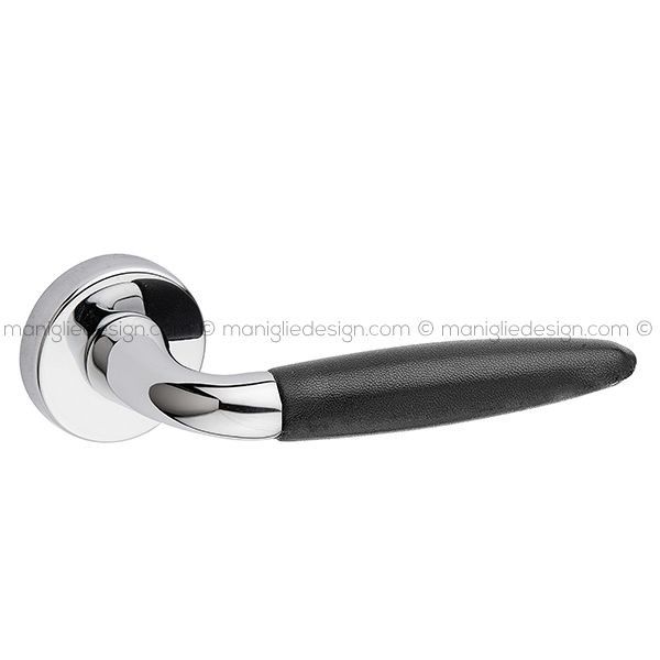 Maniglia con impugnatura in pelle per porta Sogno Fimet Handles su rosetta tonda.