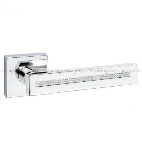 Maniglia con cristalli Swarovski per porta Square Fimet Handles su rosetta quadrata.