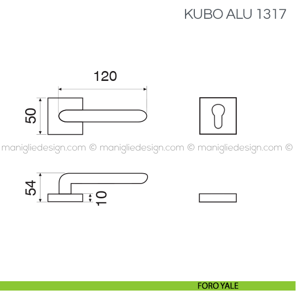 Maniglia per porta Kubo Alu Fimet Handles su rosetta quadrata.