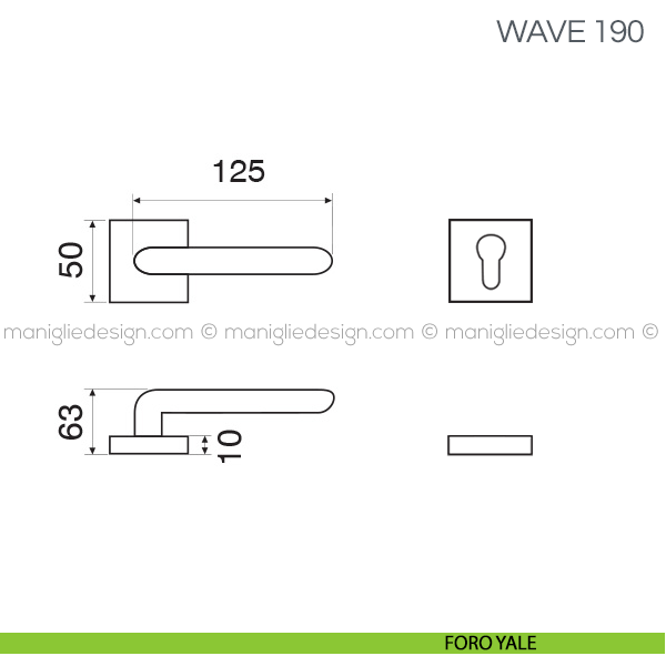 Maniglia per porta Wave Fimet Handles su rosetta quadrata.
