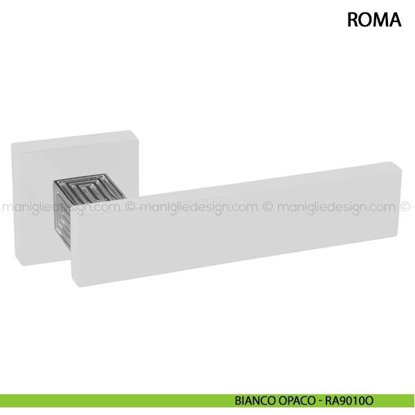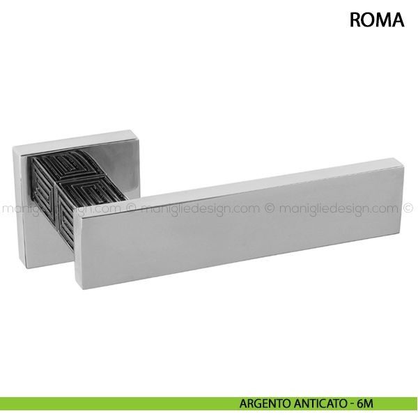 Maniglia per porta Roma Comit con rosetta e bocchetta quadrata.