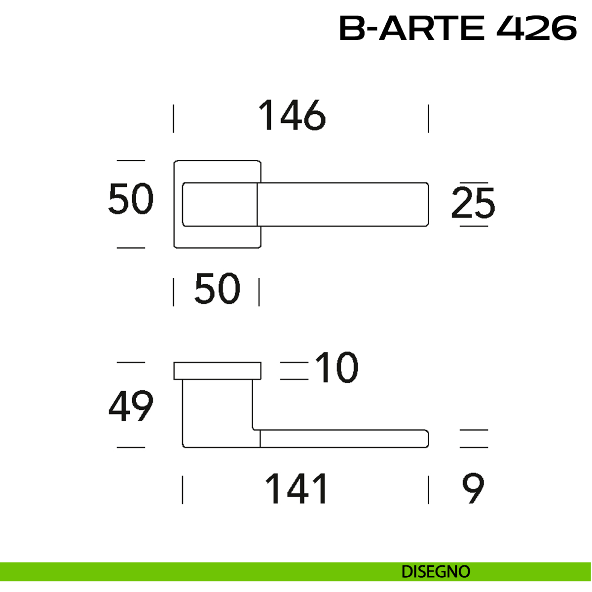 Maniglia per porta interna B-Arte 426 Reguitti con rosetta quadrata. Design by Studio Reguitti.