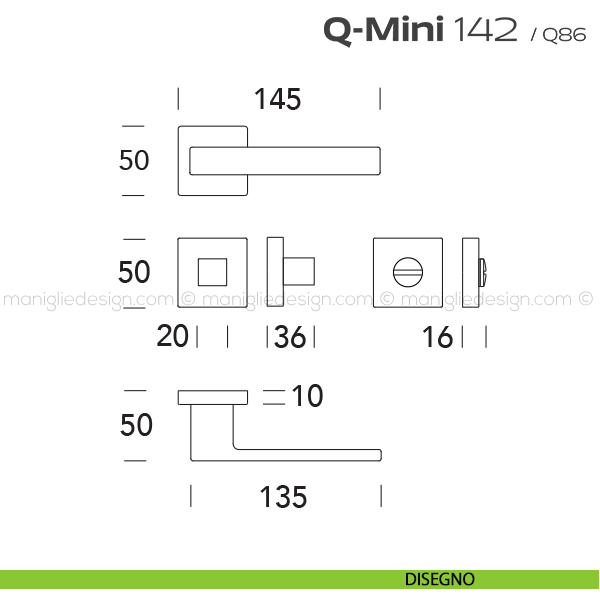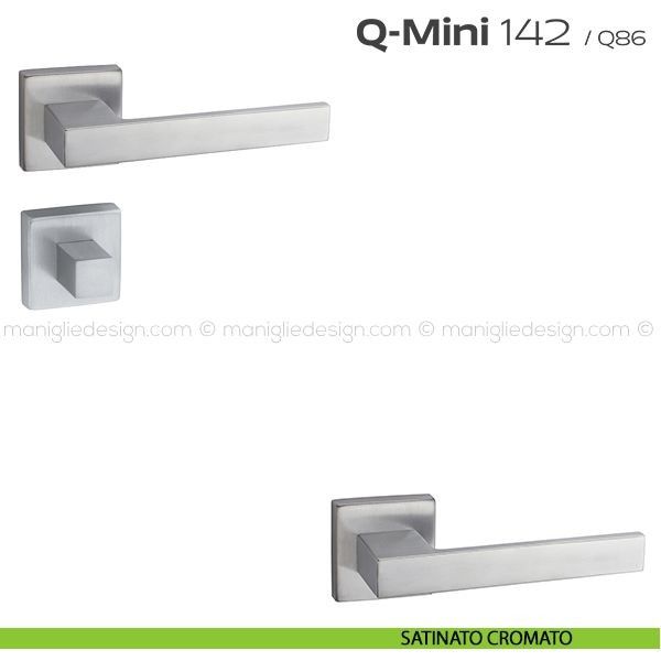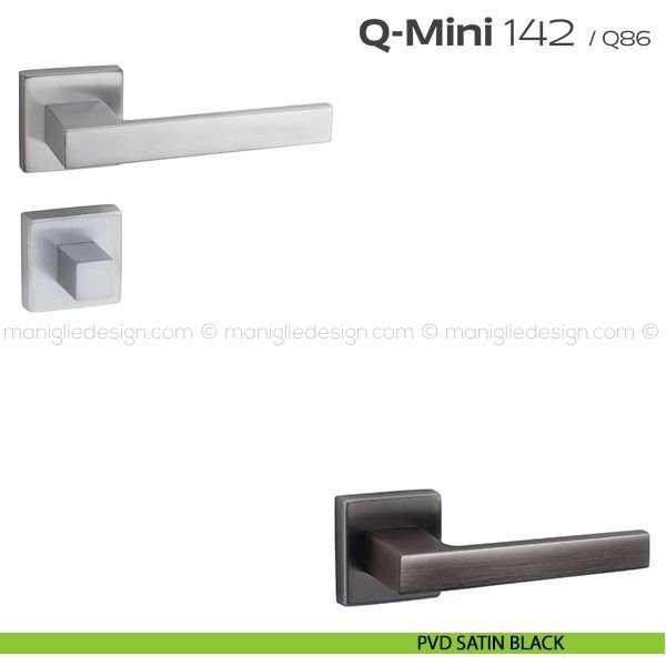 Maniglia per porta interna con nottolino 142 Q-Mini Reguitti con rosetta quadrata. Design by Studio Reguitti.