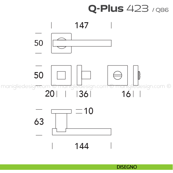 Lo studio di progettazione interno all'azienda Reguitti progetta una nuova serie di maniglie per interni chiamata 423 Q-Plus Reguitti. Un insieme ragionato di forme geometriche elementari definisce il rigore razionalista di Q-PLUS, una maniglia che cattura l'occhio per il design ridotto ai minimi termini, e la mano per la presa salda e precisa.