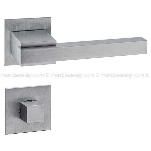 Maniglia per porta interna 429 Q-Star Flat Reguitti con rosetta e bocchetta quadrata bassa.