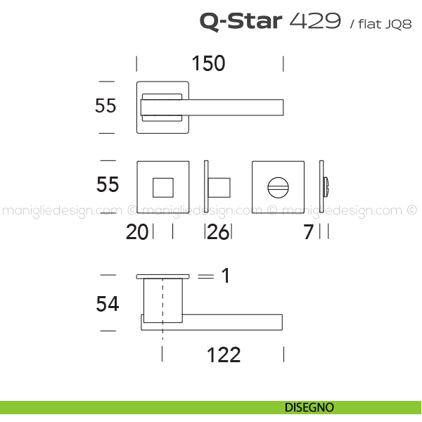 429 Q-Star Flat Reguitti viene offerta anche nella variante maniglia per porta. Scopri la gamma completa Reguitti 429 Q-Star Flat per completare con stile il tuo arredamento.
