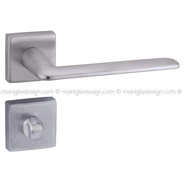 Maniglia per porta interna con nottolino 141 Spring Q. Reguitti con rosetta quadrata. Design by Studio Reguitti.