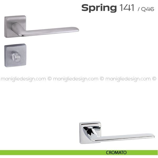 Maniglia per porta interna 141 Spring Q. Reguitti con rosetta e bocchetta quadrata.