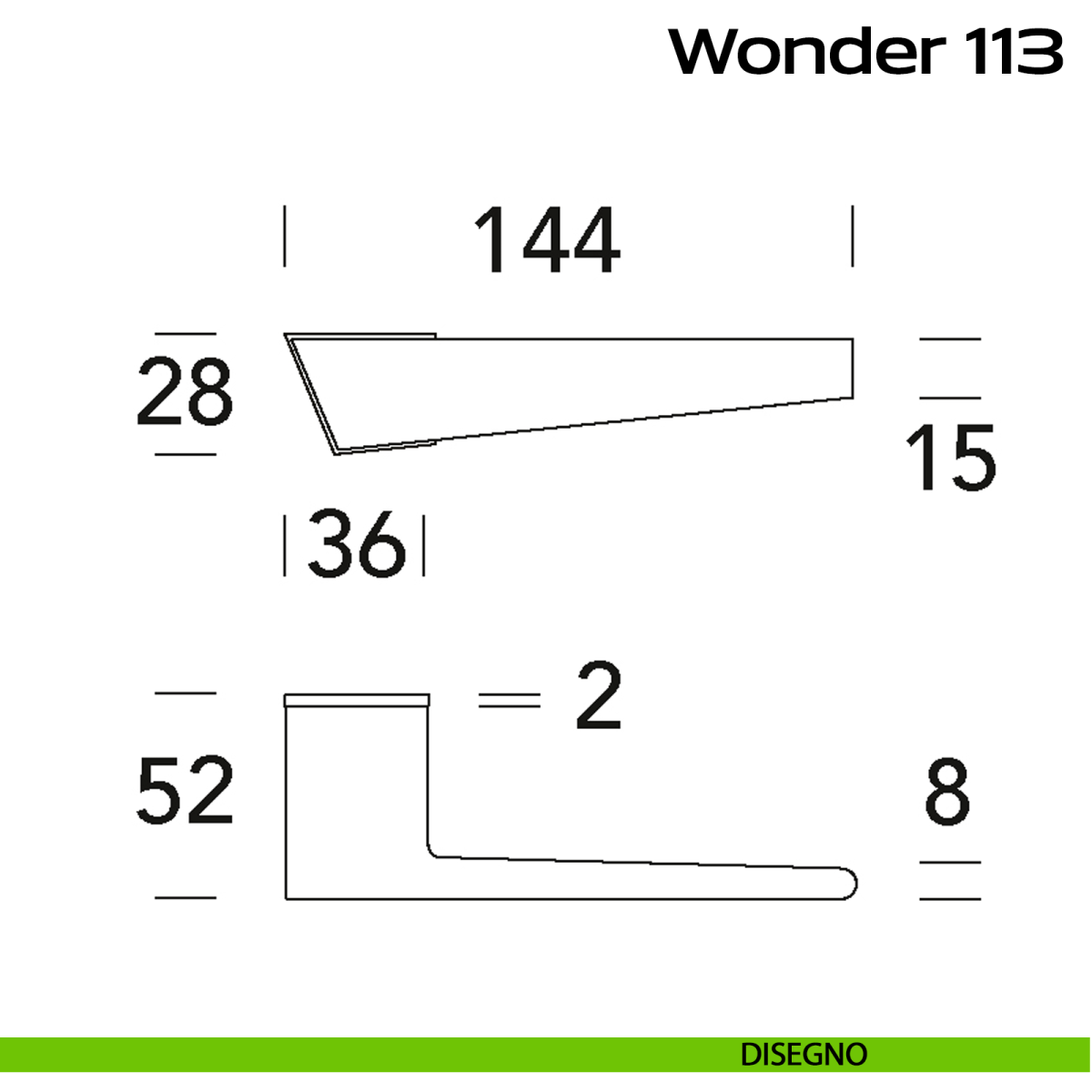 Maniglia per porta interna Wonder 113 Minimal Reguitti con rosetta quadrata.