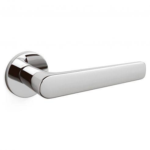 Maniglia per porta interna Lugano Olivari con rosetta e bocchetta tonda bassa. Design by Carlo Colombo.