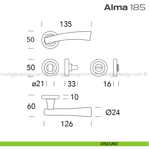 Lo studio di progettazione interno all'azienda Reguitti progetta una nuova serie di maniglie per interni chiamata 171 Alisè Reguitti, un prodotto dalla forma affusolata e dal profilo rotondeggiante dedicata a chi ama uno stile contemporaneo dai richiami romantici. L'impugnatura rigonfia assicura, rendendo al presa certa e decisa.
