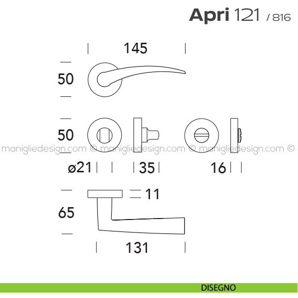 Maniglia per porta interna con nottolino 121 Apri T. Reguitti con rosetta.