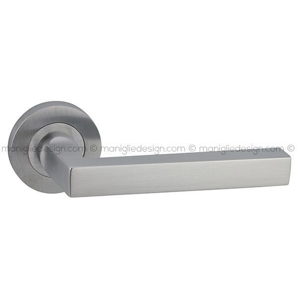 Maniglia per porta interna Laser 130 Reguitti con rosetta e bocchetta tonda. Design by Studio Reguitti.