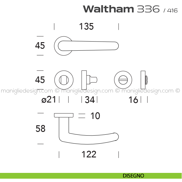 Lo studio di progettazione interno all'azienda Reguitti disegna una nuova serie di maniglie per interni chiamata 336 Waltham Reguitti. Semplice, lineare, equilibrata, Whaltam rappresenta l'emblema della moderna maniglia che nella sua essenzialità e senza rinunciare a suggestioni classiche, è in grado di adattarsi a qualunque concept progettuale, sia esso pubblico o privato.