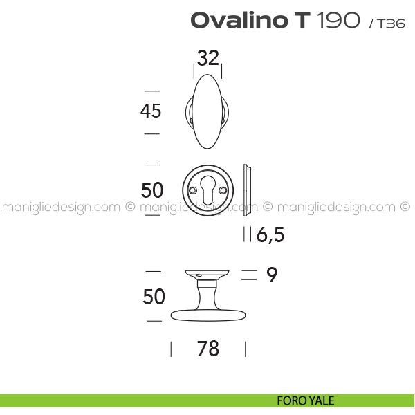 Pomolo ovale girevole per porta 190 Ovalino a T Reguitti con rosetta e bocchetta tonda.