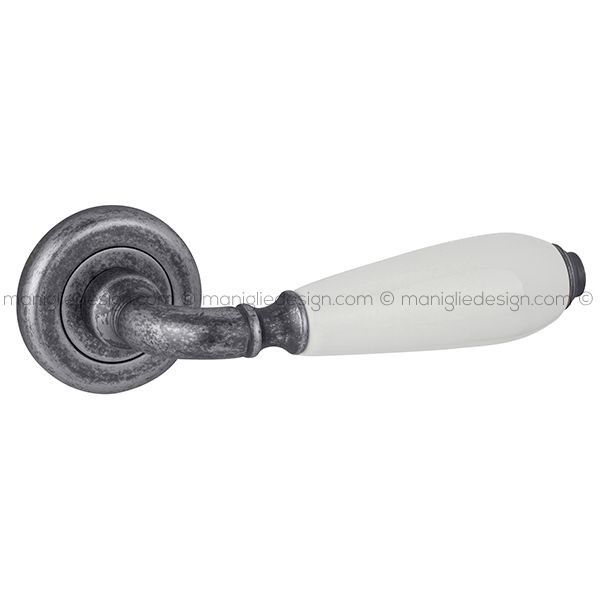 Maniglia porcellana per porta interna 069 Cinzia Reguitti con rosetta e bocchetta tonda ad avvitare.