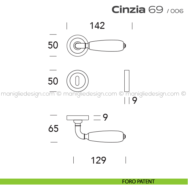 Lo studio di progettazione interno all'azienda Reguitti progetta una nuova serie di maniglie per interni chiamata 69 Cinzia Reguitti. La linea Vintage è la collezione di maniglie classiche Reguitti. Cinzia è la maniglia in ottone e porcellana che combina pregiate finiture e finissimi colori. Pregiati inserti richiamano lo stile dei primi '900, ideali per arredare gli ambienti con uno spiccato gusto classico.