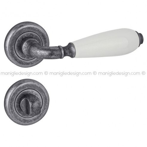 Maniglia porcellana per porta interna 069 Cinzia Reguitti con rosetta e bocchetta tonda ad avvitare.