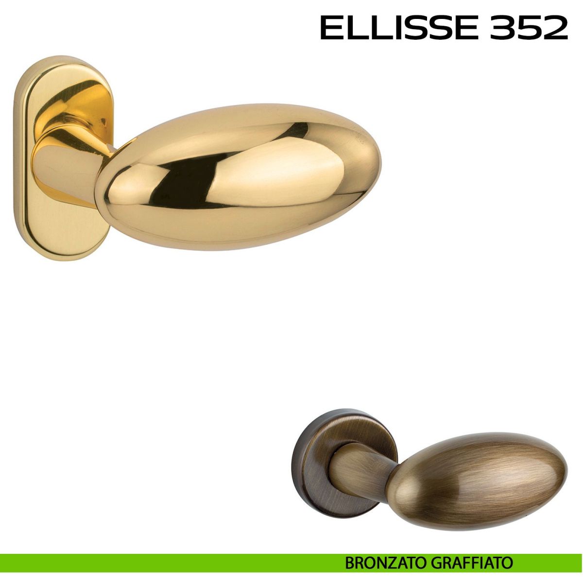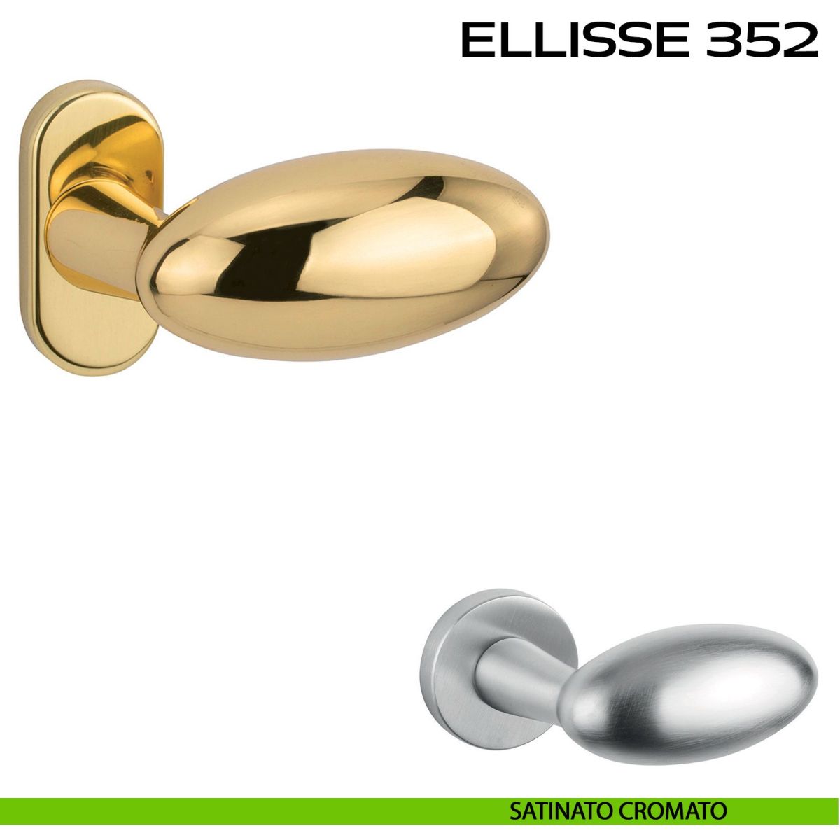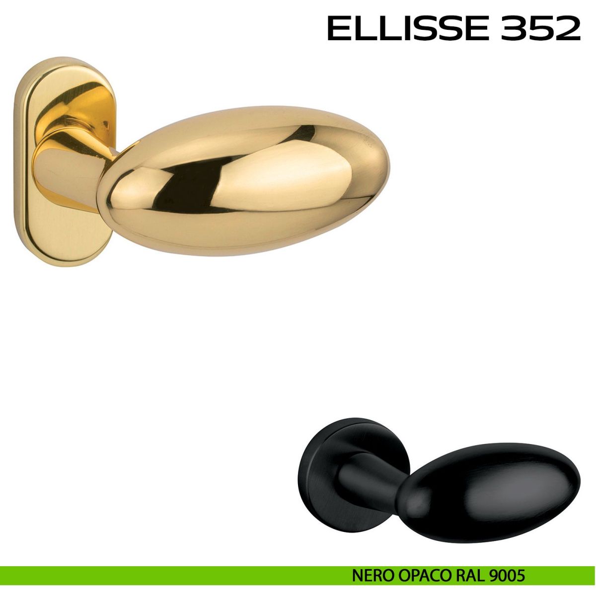 Maniglia per porta Ellisse 352 Reguitti con rosetta ovale. Design by Studio Reguitti.