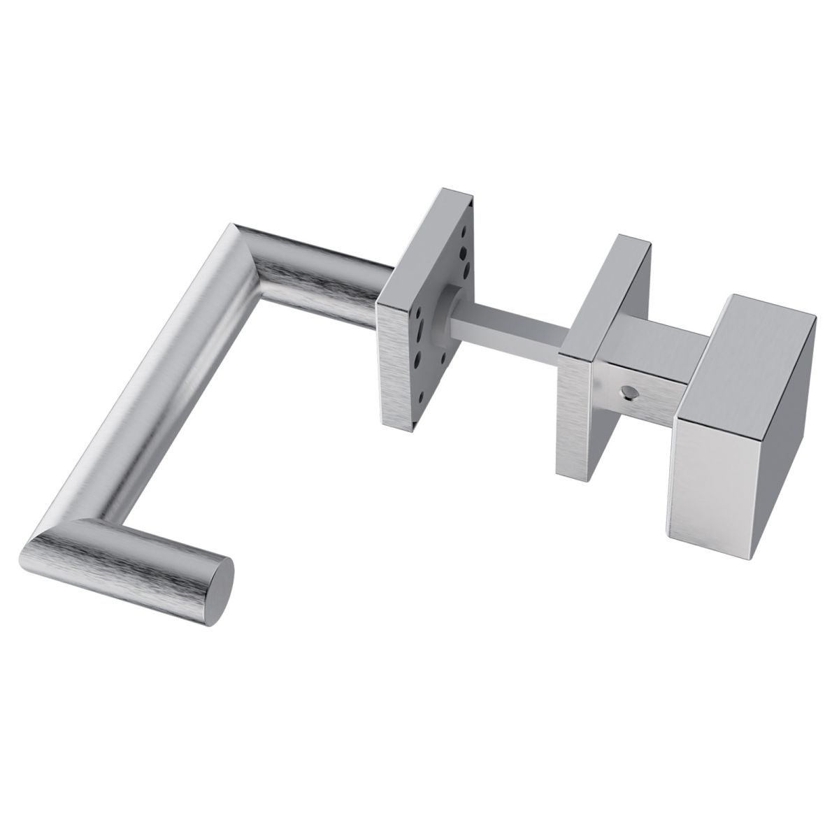 Maniglia in acciaio per porta Glasgow L30 e pomolo fisso 2Q1 Reguitti Inox con rosetta quadrata. Design by Studio Reguitti Inox.