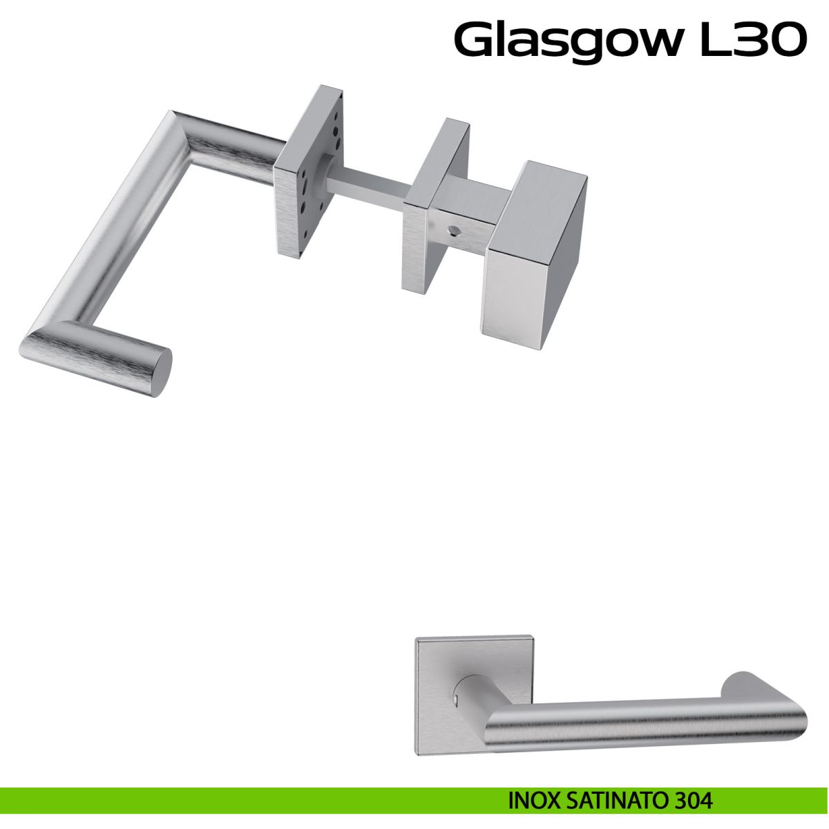 Maniglia in acciaio per porta Glasgow L30 Reguitti Inox con rosetta quadrata.