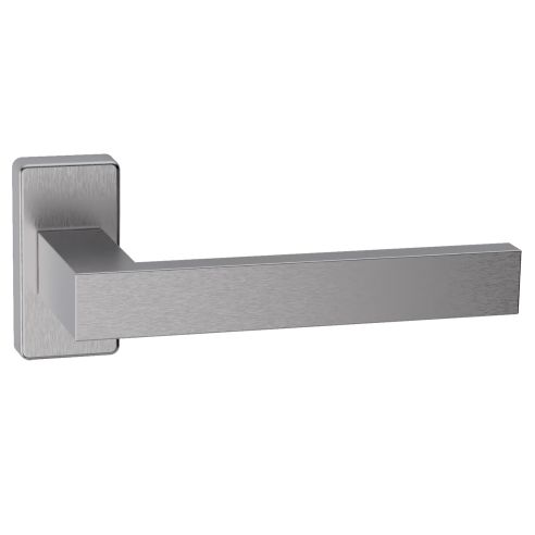 Maniglia in acciaio per porta Kyoto Q18 Reguitti Inox con rosetta rettangolare. Design by Studio Reguitti Inox.