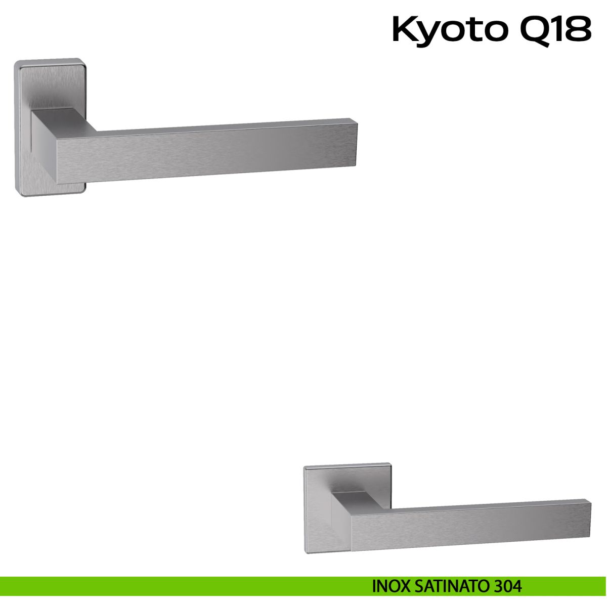 Maniglia in acciaio per porta Kyoto Q18 e pomolo fisso 2Q1 Reguitti Inox con rosetta quadrata.