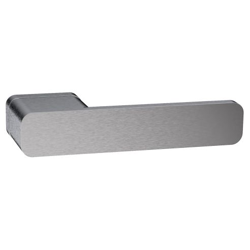 Maniglia in acciaio per porta One 10N Reguitti Inox con rosetta rettangolare. Design by Studio Reguitti Inox.