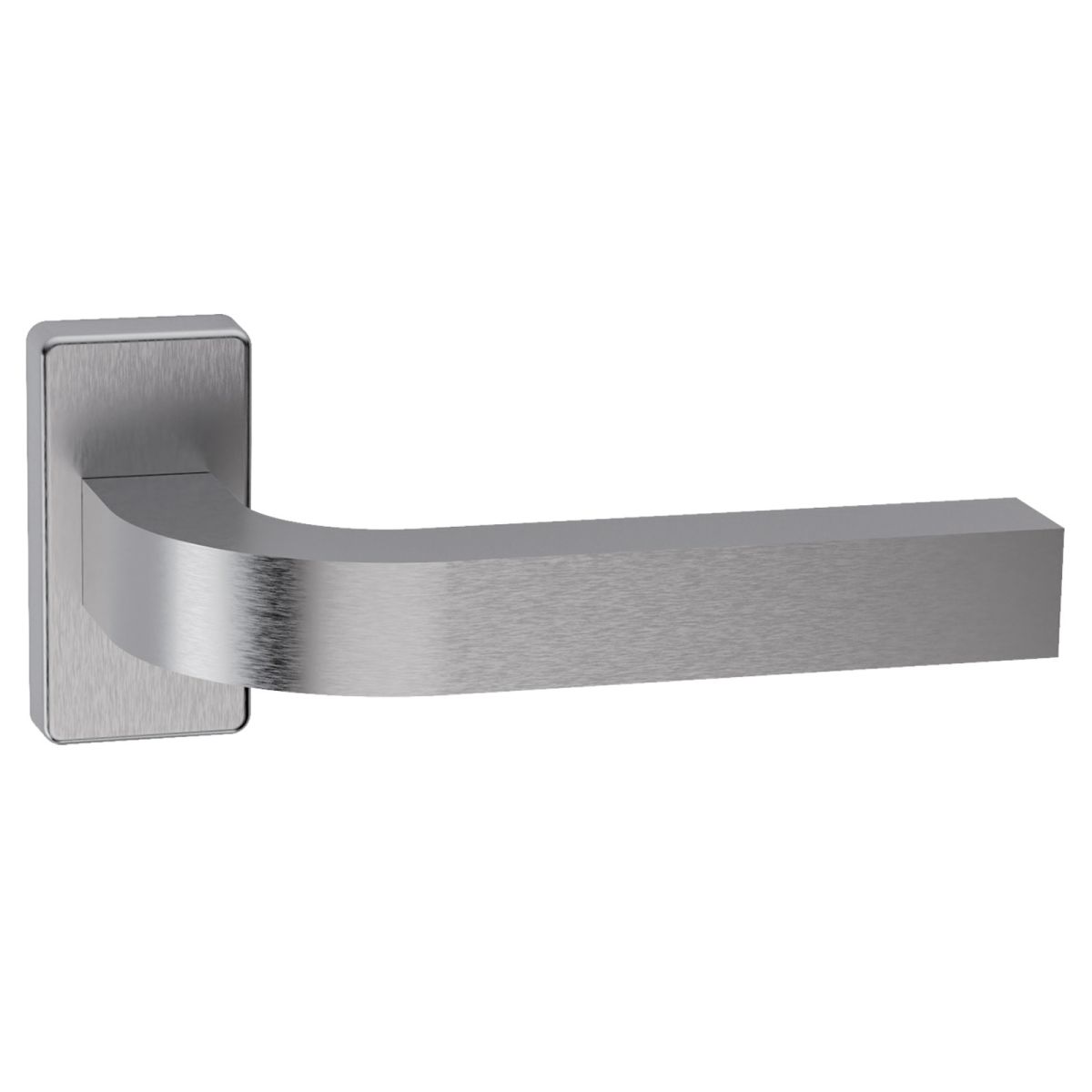 Maniglia in acciaio per porta Osaka Q05 Reguitti Inox con rosetta rettangolare. Design by Studio Reguitti Inox.