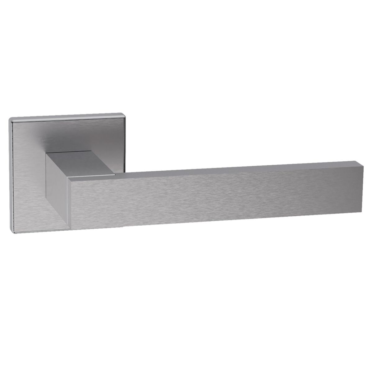 Maniglia in acciaio per porta Phoenix Q01 Reguitti Inox con rosetta quadrata. Design by Studio Reguitti Inox.