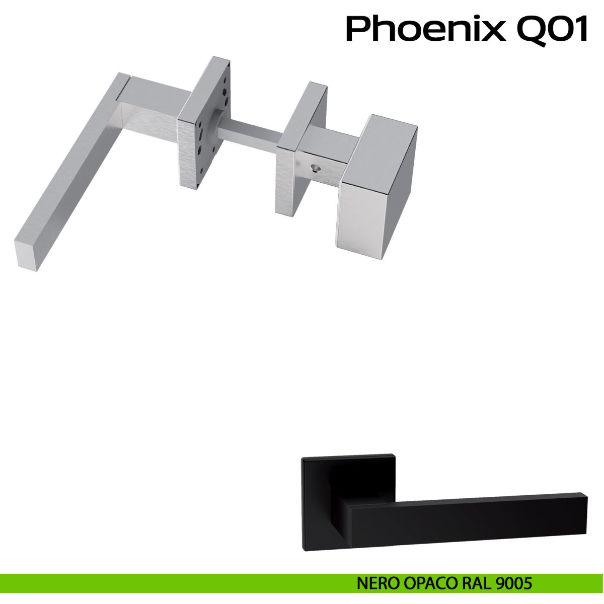 Maniglia in acciaio per porta Phoenix Q01 e pomolo fisso 2Q1 Reguitti Inox con rosetta quadrata.