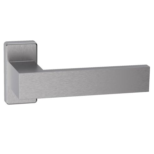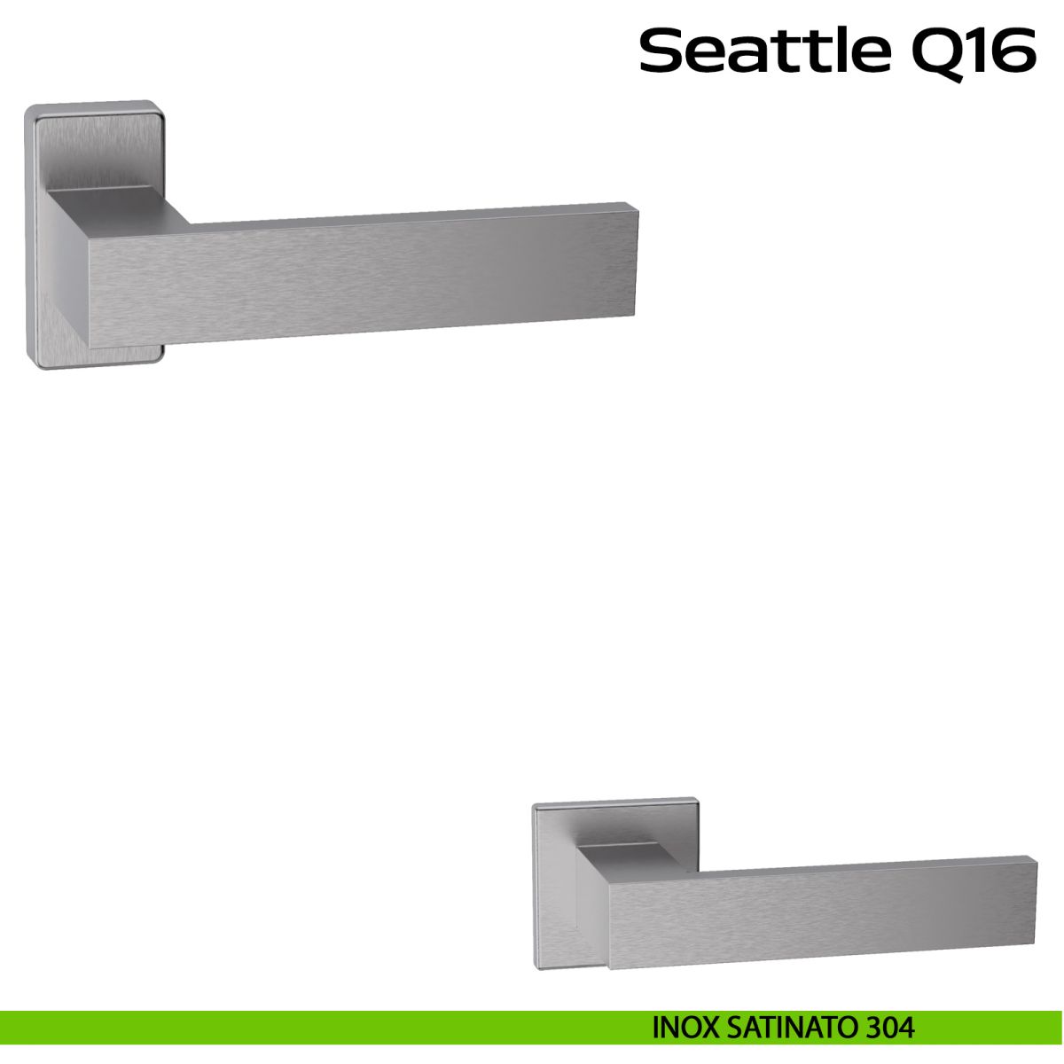 Maniglia in acciaio per porta Seattle Q16 Reguitti Inox con rosetta rettangolare. Design by Studio Reguitti Inox.