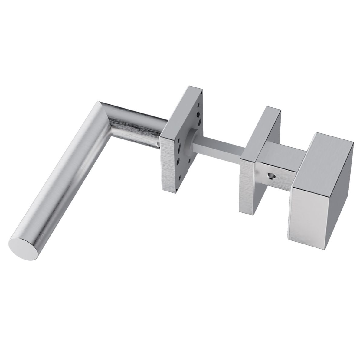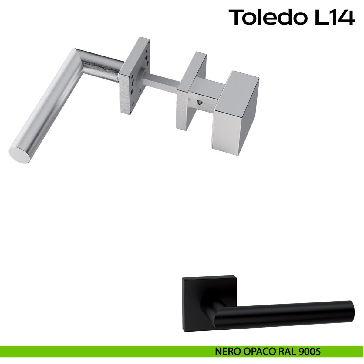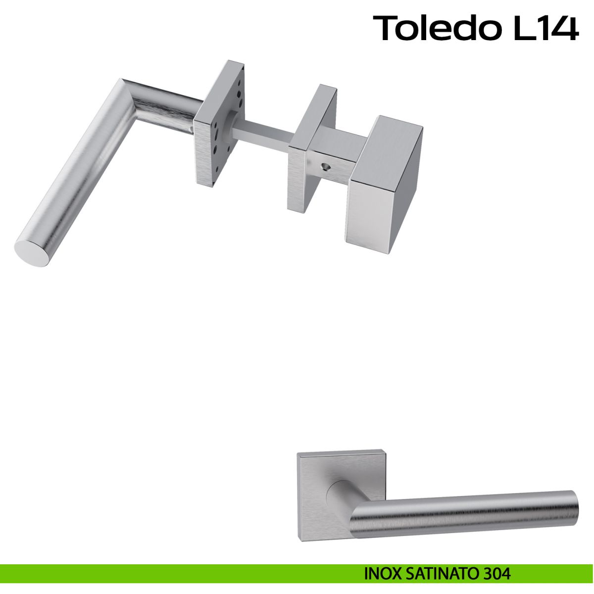 Maniglia in acciaio per porta Toledo L14 e pomolo fisso 2Q1 Reguitti Inox con rosetta quadrata. Design by Studio Reguitti Inox.