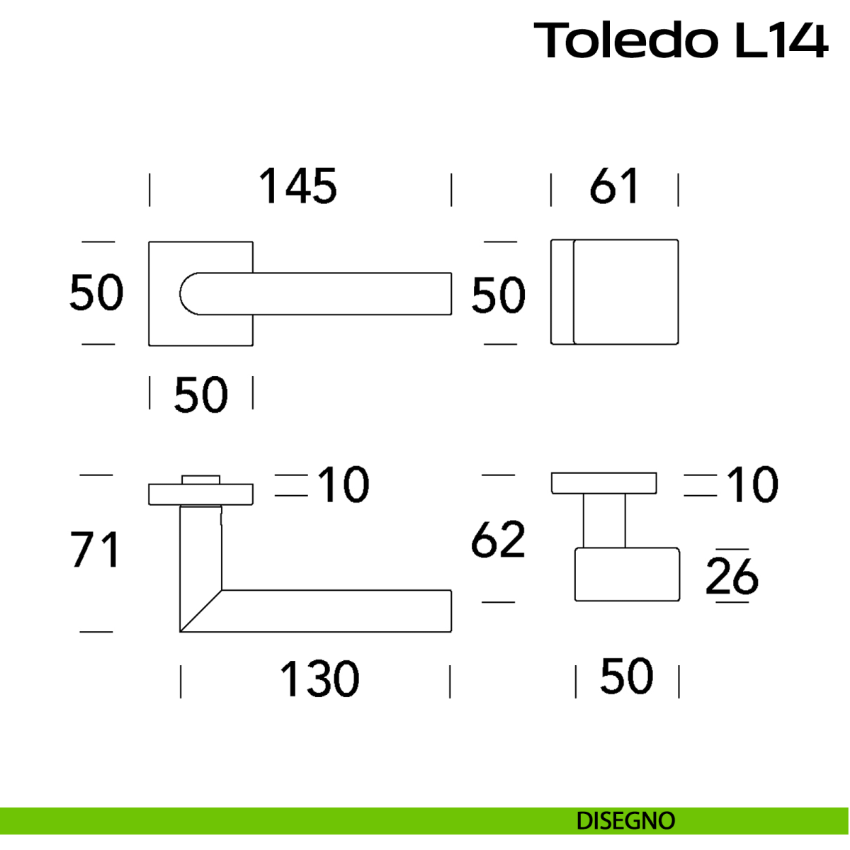 Maniglia in acciaio Toledo L14 e pomolo fisso 2Q1 Reguitti Inox rosetta quadrata