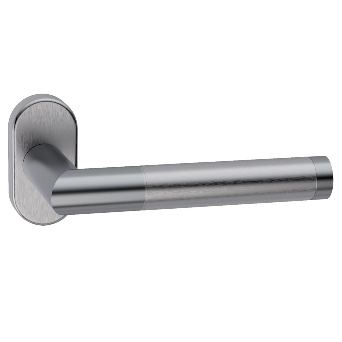Maniglia in acciaio per porta Edimburgo L10 Reguitti Inox con rosetta ovale. Design by Studio Reguitti Inox.