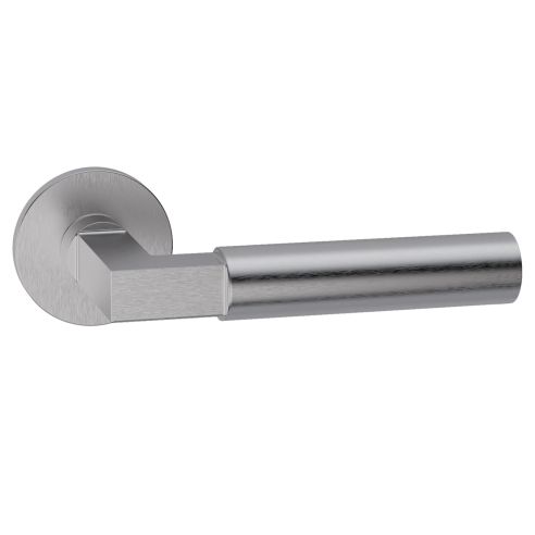Maniglia in acciaio per porta Ottawa L19 Reguitti Inox con rosetta tonda. Design by Studio Reguitti Inox.