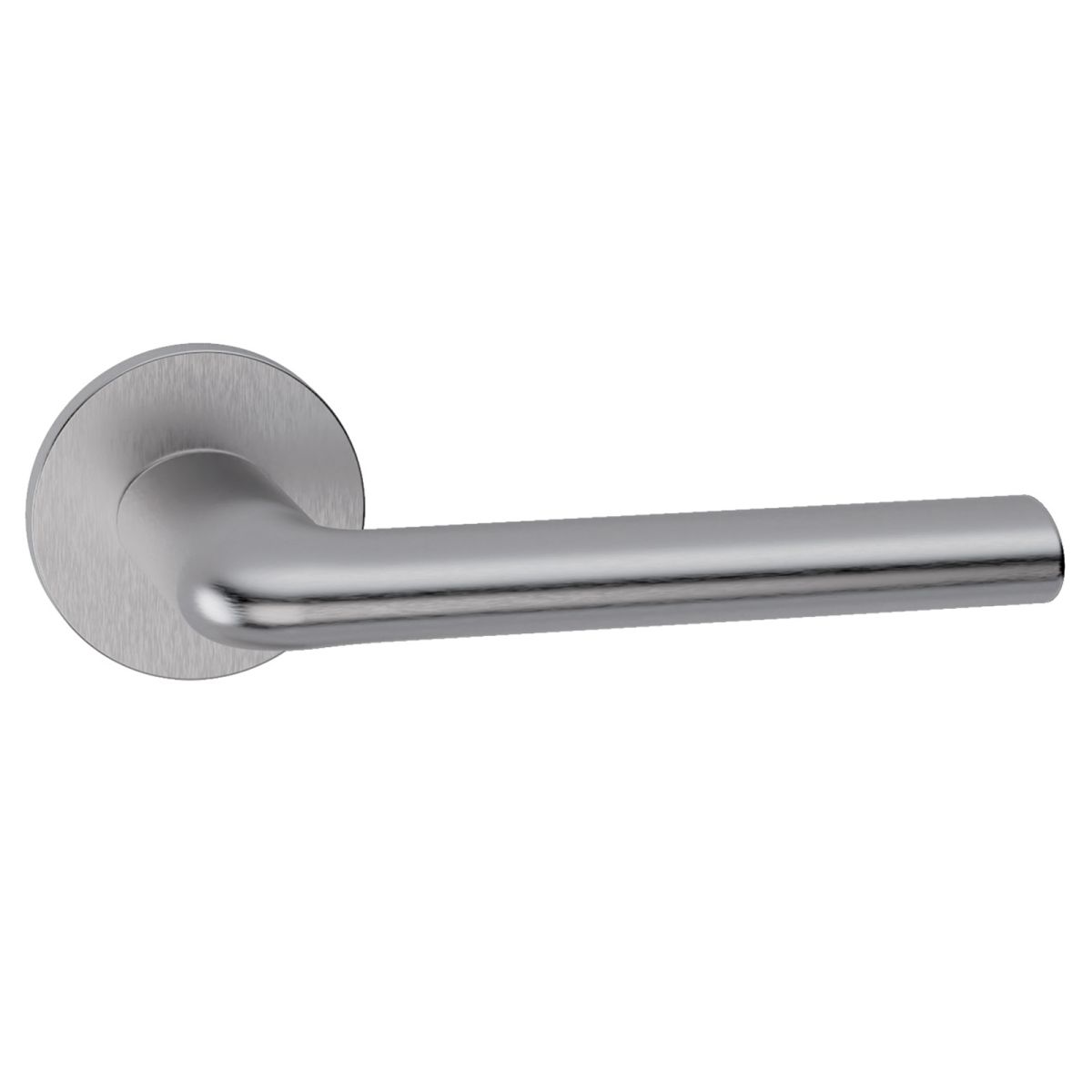 Maniglia in acciaio per porta Samos L27 Reguitti Inox con rosetta tonda. Design by Studio Reguitti Inox.