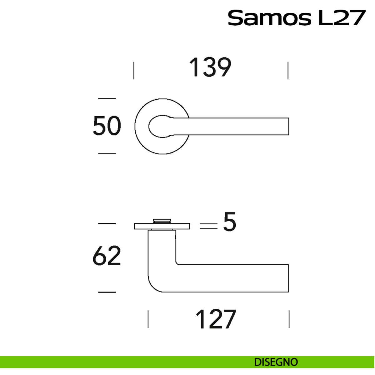 Maniglia in acciaio per porta Samos L27 Reguitti Inox con rosetta tonda.