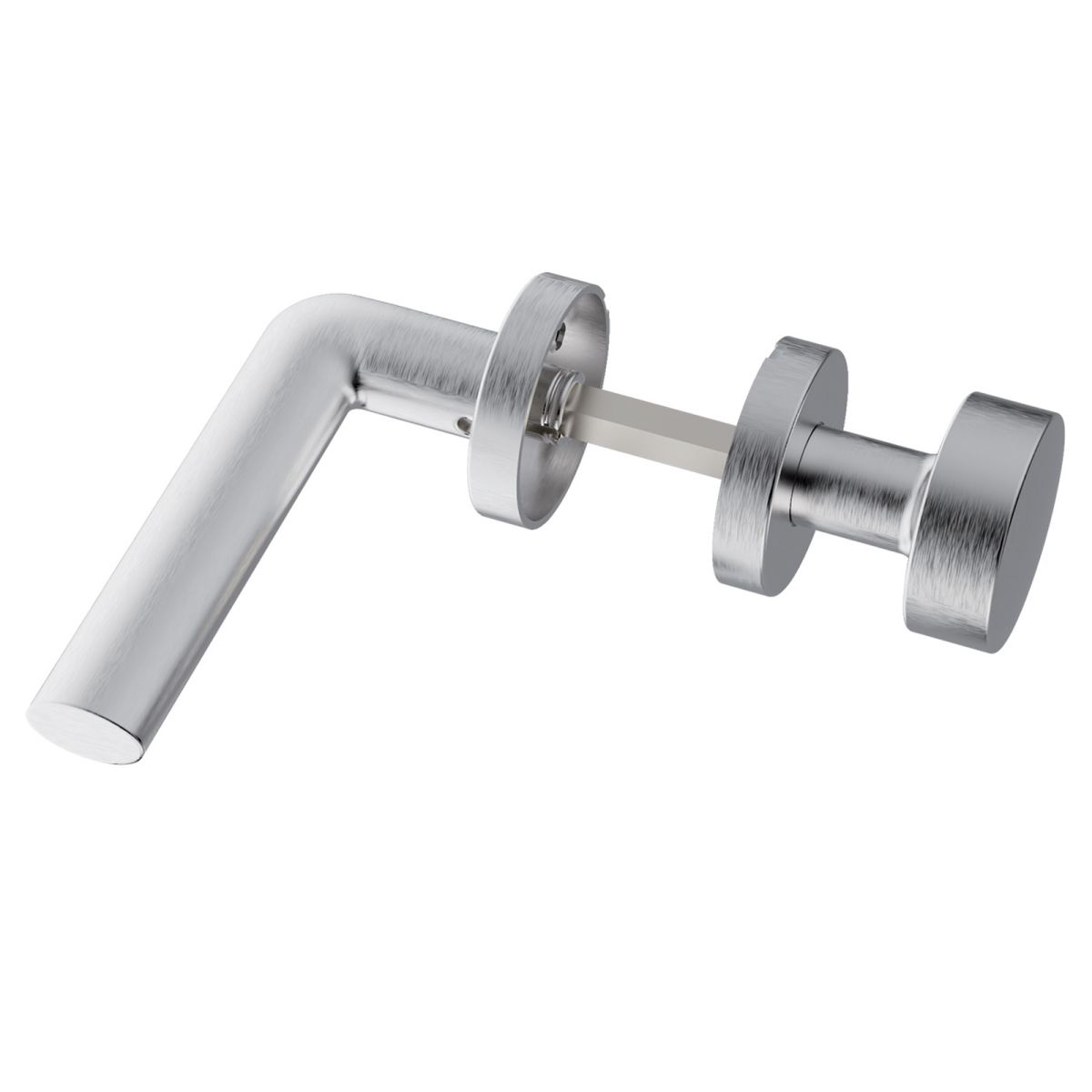 Maniglia in acciaio per porta Samos L27 e pomolo fisso 2Q1 Reguitti Inox con rosetta tonda.