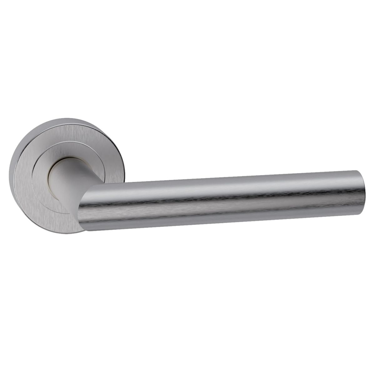 Maniglia in acciaio per porta Toledo L14 Reguitti Inox con rosetta e bocchetta tonda.